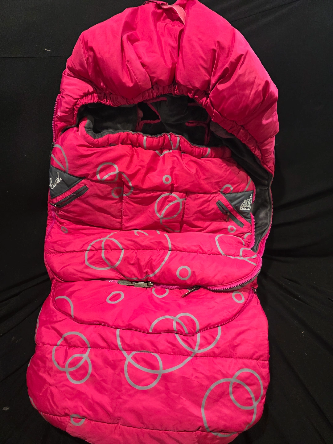 Here’s a pink Castle wearable baby sleeping bag! It's in great condition and perfect for keeping your little one cozy and warm. It features a hood and a soft, plush lining.ready to wear in this winter weather for girls