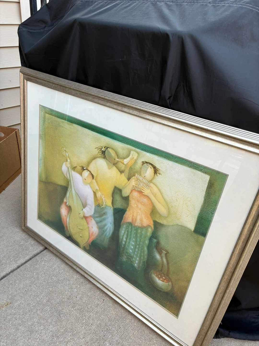 Framed Musical Trio Print Here's a framed print featuring a musical trio. It's a nice piece of art that could add a touch of culture to your space. The frame is included and it's ready to hang! Pick up in Norridge Price $20