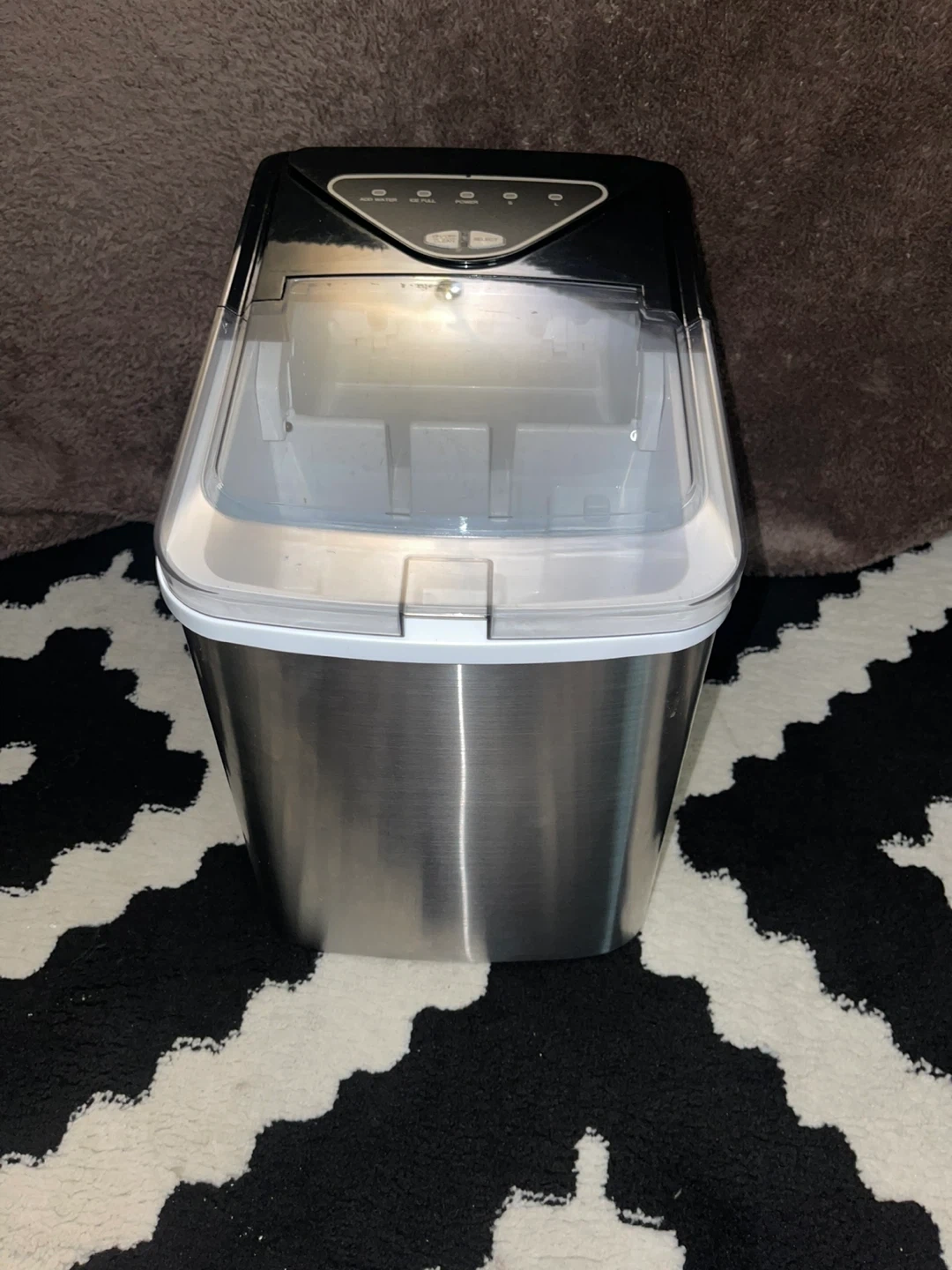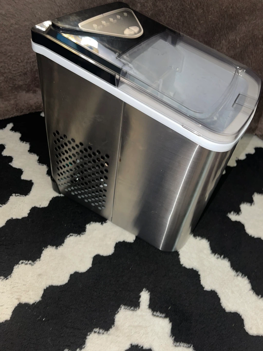Selling a countertop ice maker that's practically brand new! It comes in its original box and is ready to make ice quickly and easily. Perfect for parties, small gatherings, or just keeping your drinks cold on a hot day