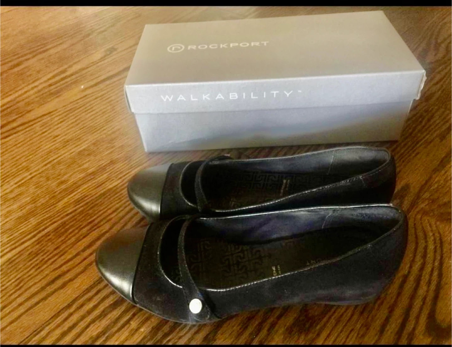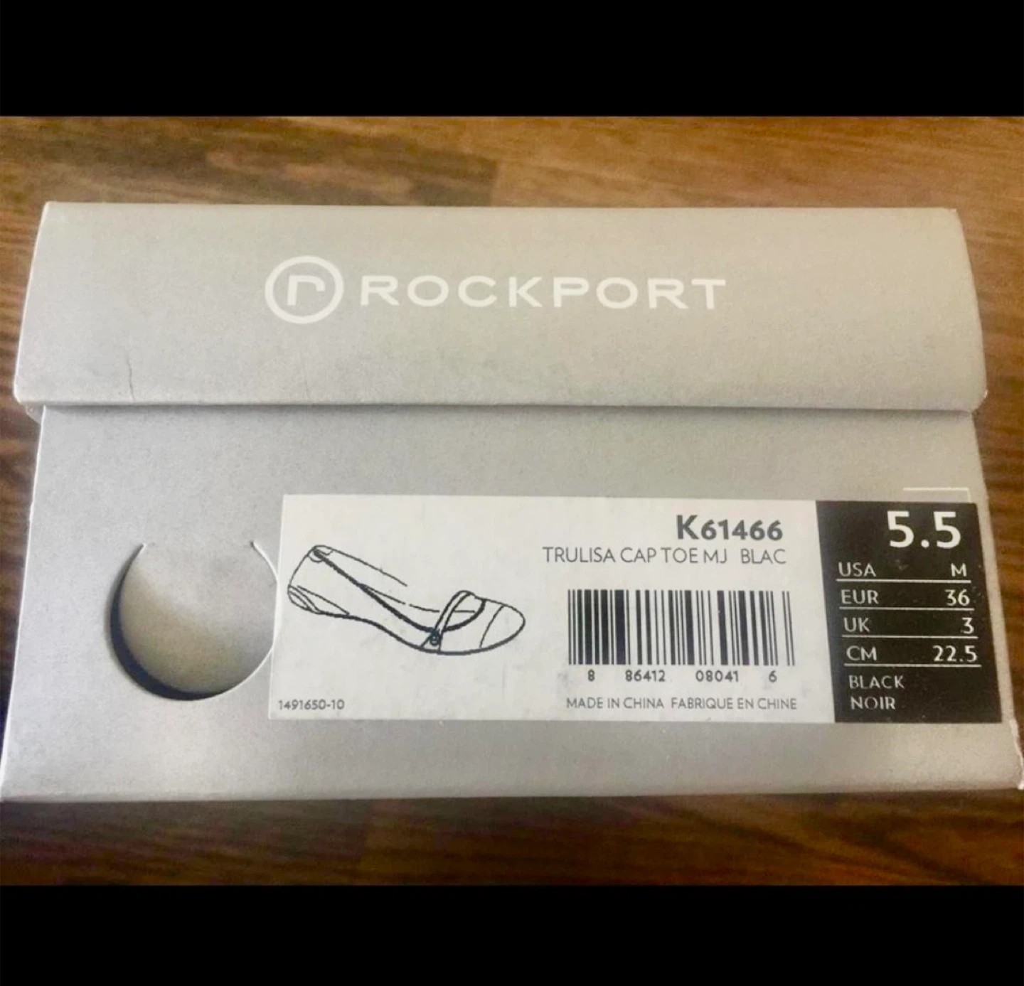 These are Rockport Trulisa Cap Toe Mary Janes in black, size 5.5. They come with the original box. They are perfect for everyday wear and are super comfortable!