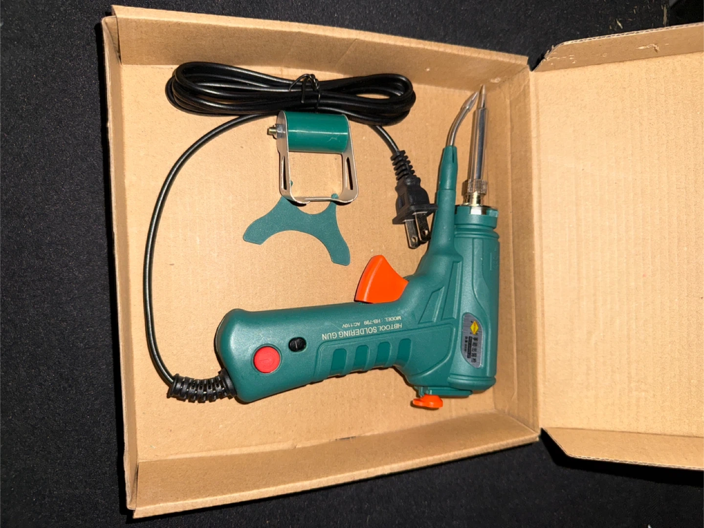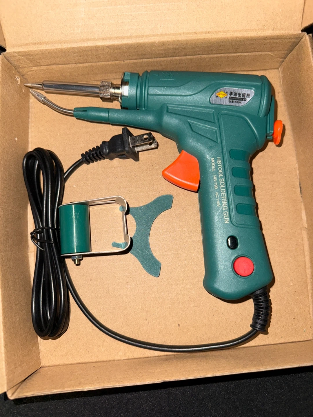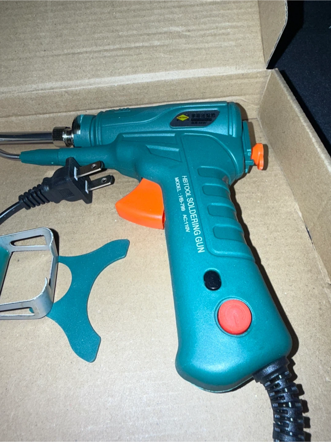 Selling a HBTOOL soldering gun in excellent condition! It comes with its original box and all components. This model is HB-799 and operates at AC 110V.