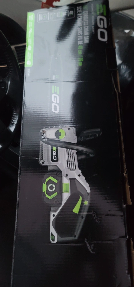 Selling an EGO cordless chain saw. It's a 16-inch saw and chain 40 cm. Comes in the original box with battery, charger and tags, basically new just tested