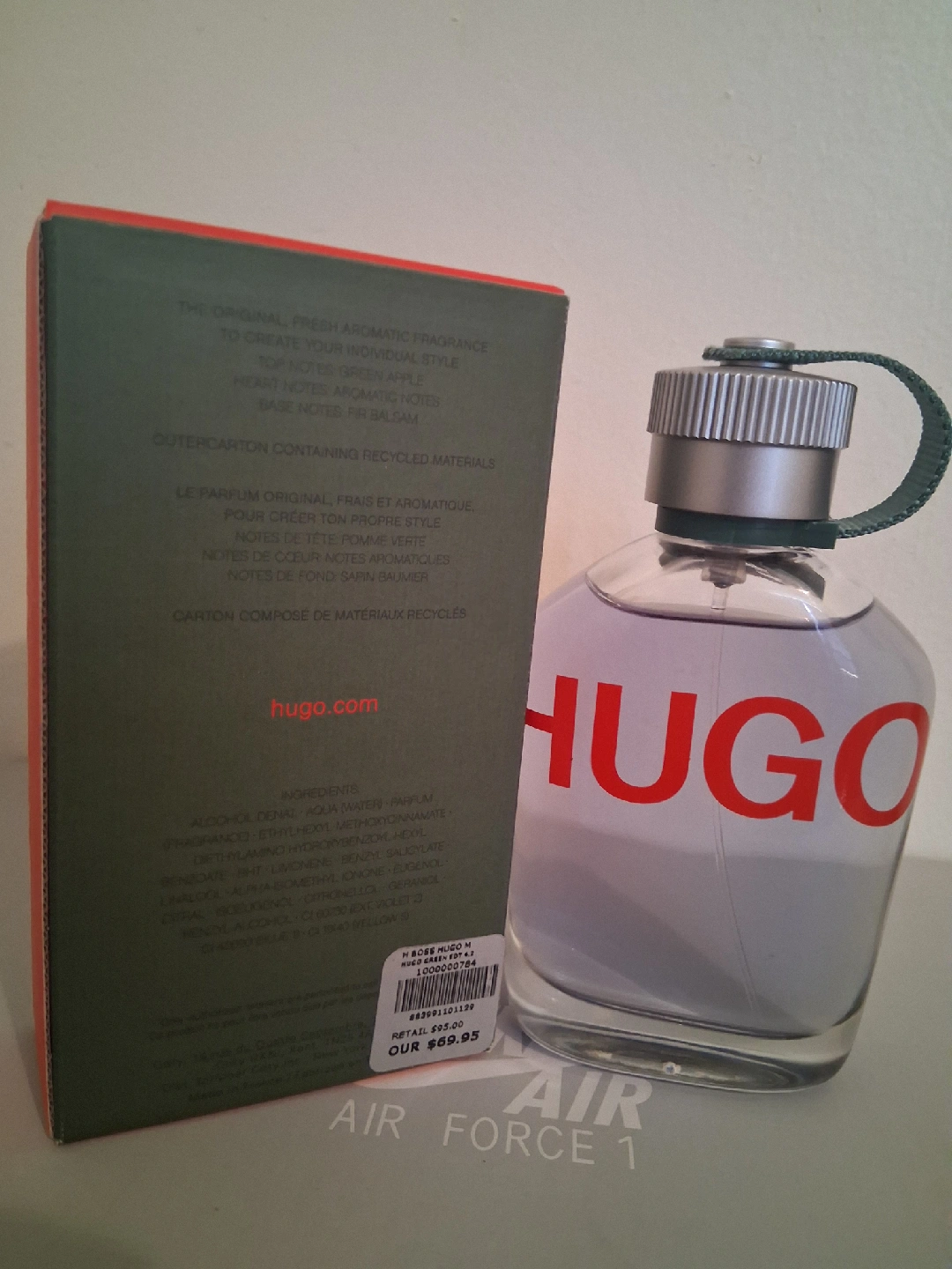 Selling a bottle of Hugo Boss Man Eau de Toilette! It's a 125ml bottle and comes with the original box. The box mentions the original fresh aromatic fragrance. The scent has top notes of green apple, heart notes of aromatic notes, and base notes of fire.