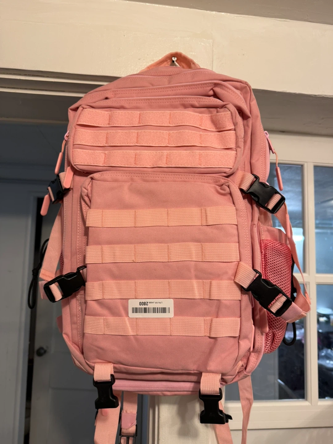 Selling a cute pink tactical backpack! It's in great condition and ready for a new home. This backpack features multiple compartments and adjustable straps, making it perfect for school, travel, or everyday use
