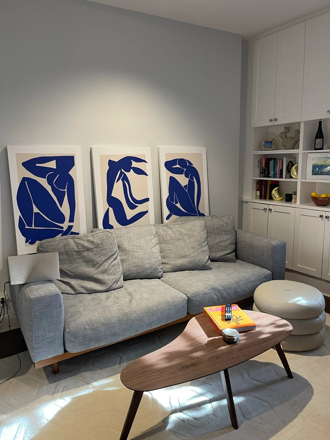 Love this couch be redecorating! It’s a West Elm Newport couch in a light blue/gray color. Bought brand new ~2 years ago. 94 inches, sells for $2200+ new