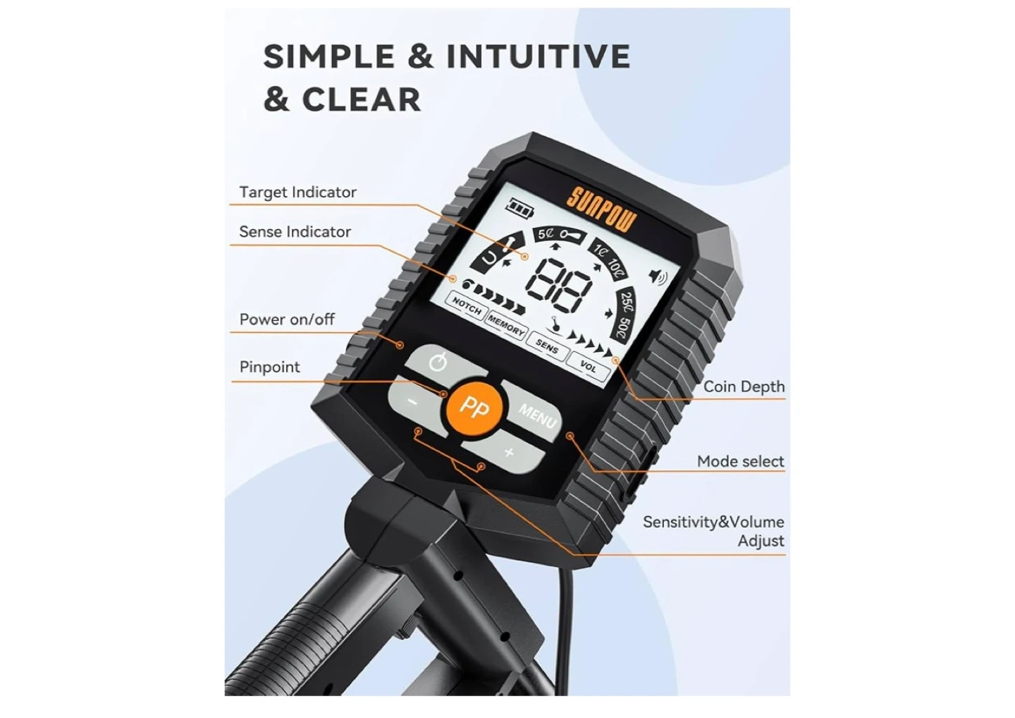 47Discover with confidence using this SUNPOW metal detector! It features an 8" waterproof search coil and anti-interference material. Other features include: - Headset support - Adjustable stem - Professional LCD display - Ergonomic design - Suitable for beginners - Stable & high accuracy - Lightweight & easy to carry - IP68 waterproof