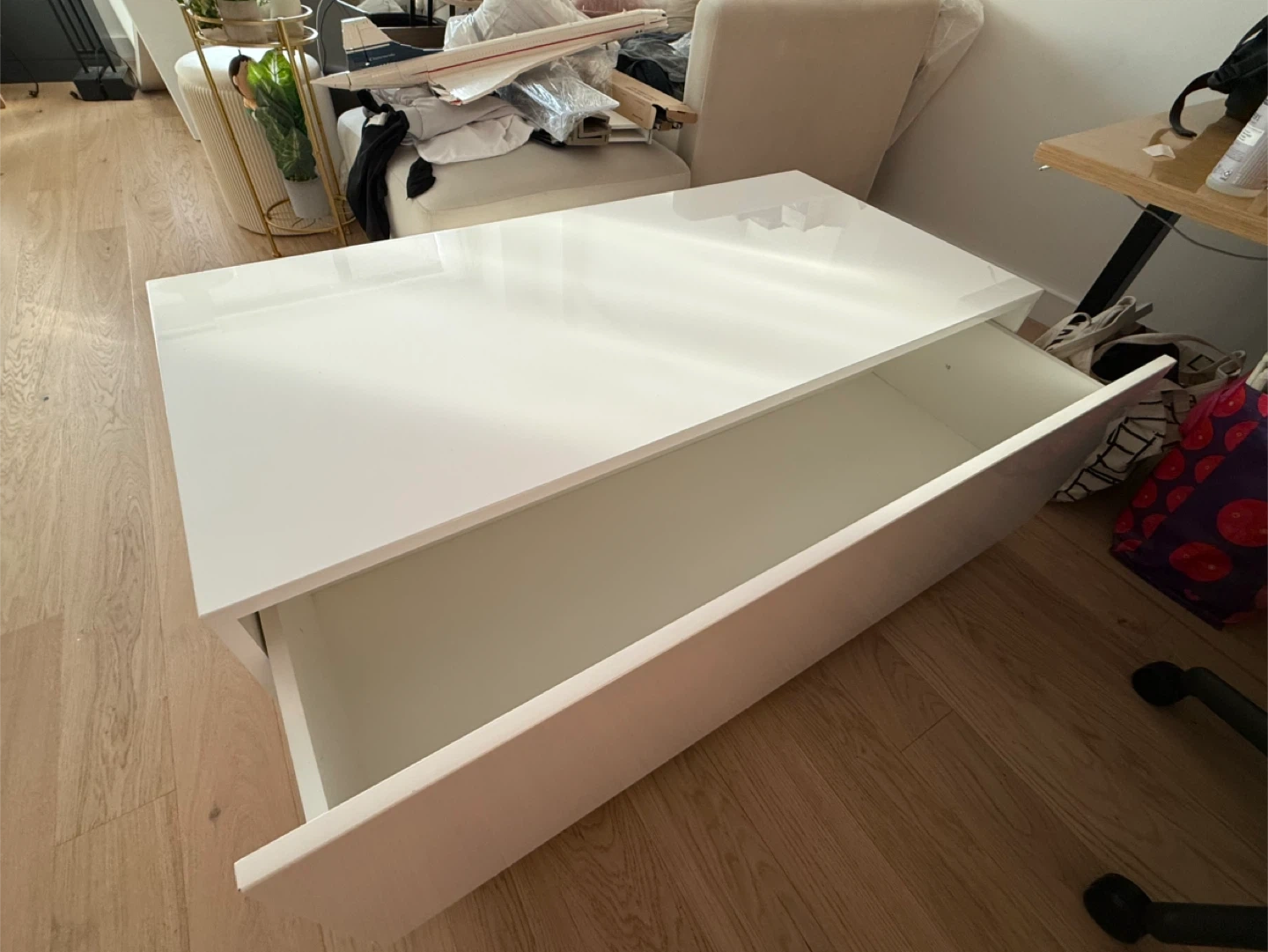 Carson 48" White High Gloss Coffee Table by All Modern with storage https://www.allmodern.com/furniture/pdp/carson-storage-coffee-table-ey10679.html Paid 1k Pickup in Columbus Circle