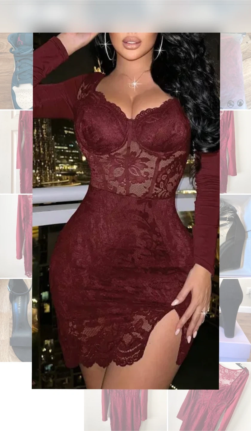 15Selling VaVaBold Knitted Lace Cup Collar Long Sleeve Sexy Women Dress Burgundy Color Women Outfit Fall Cloth For Women. Perfect for a night out or special occasion