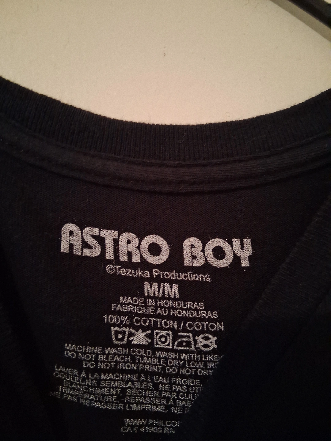 Selling a black Astro Boy t-shirt in size M. It's made of 100% cotton and features a cool graphic print of Astro Boy. Great for any fan of the classic anime. open for trades.