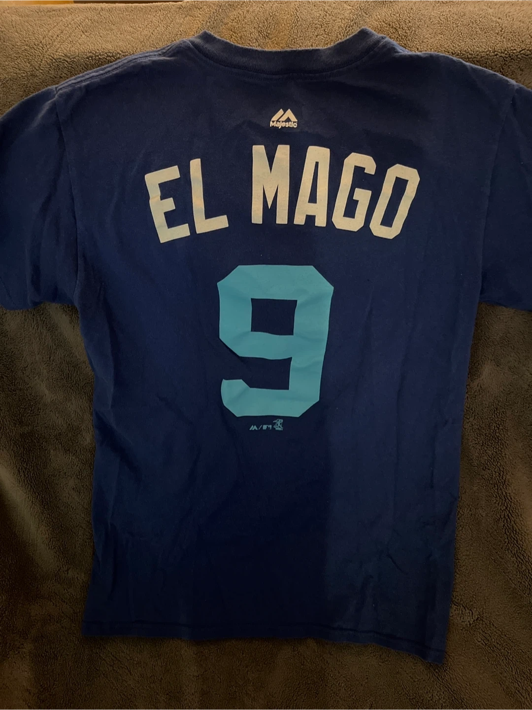 18Selling a Majestic brand Chicago Cubs t-shirt with "El Mago" and the number 9 on the back! The shirt is a nice navy blue color with the Cubs logo on the front