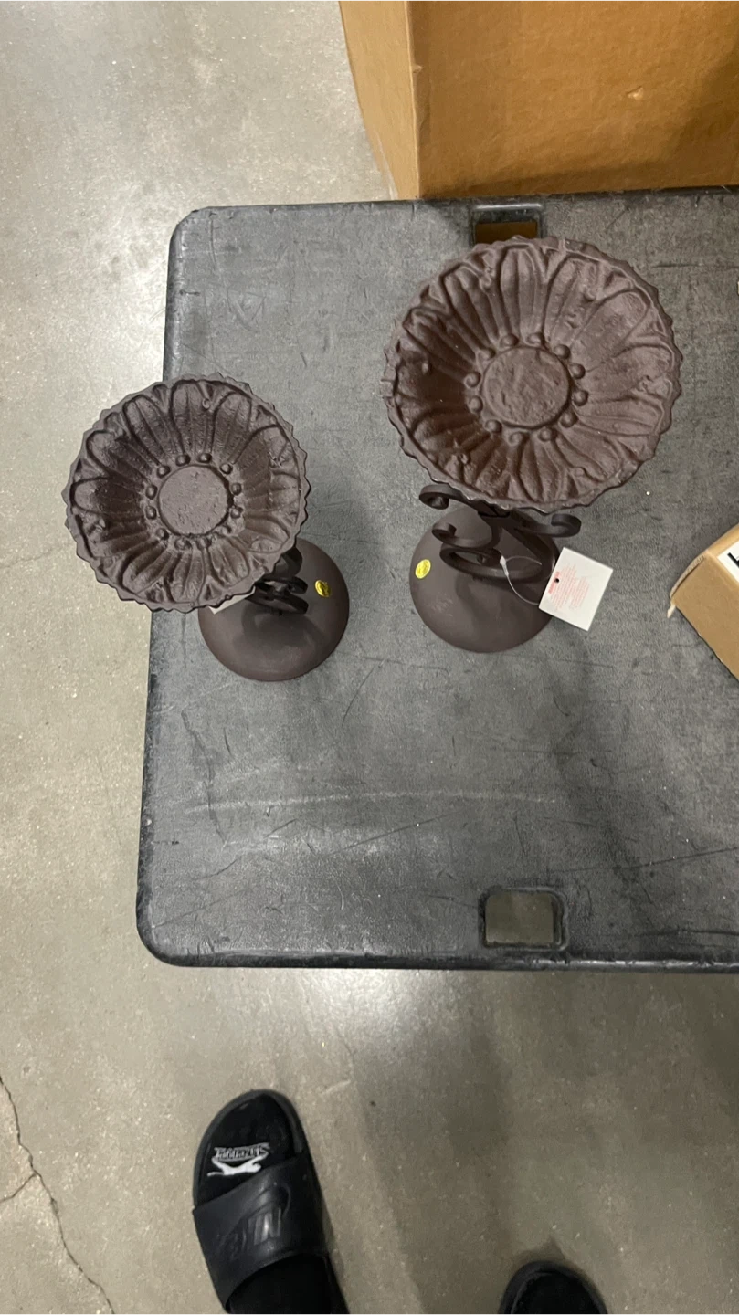 Selling a set of two Home Trends bird feeders. They have a lovely rustic brown color and a unique floral design on the trays. Perfect for adding a touch of charm to your garden or outdoor space