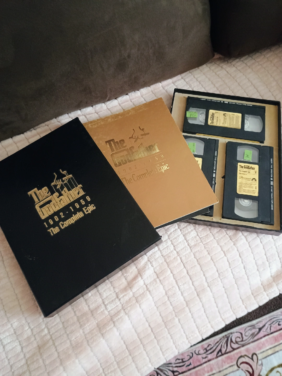 Selling a complete VHS set of The Godfather 1902-1959 The Complete Epic. This set includes the VHS tapes and the original box.