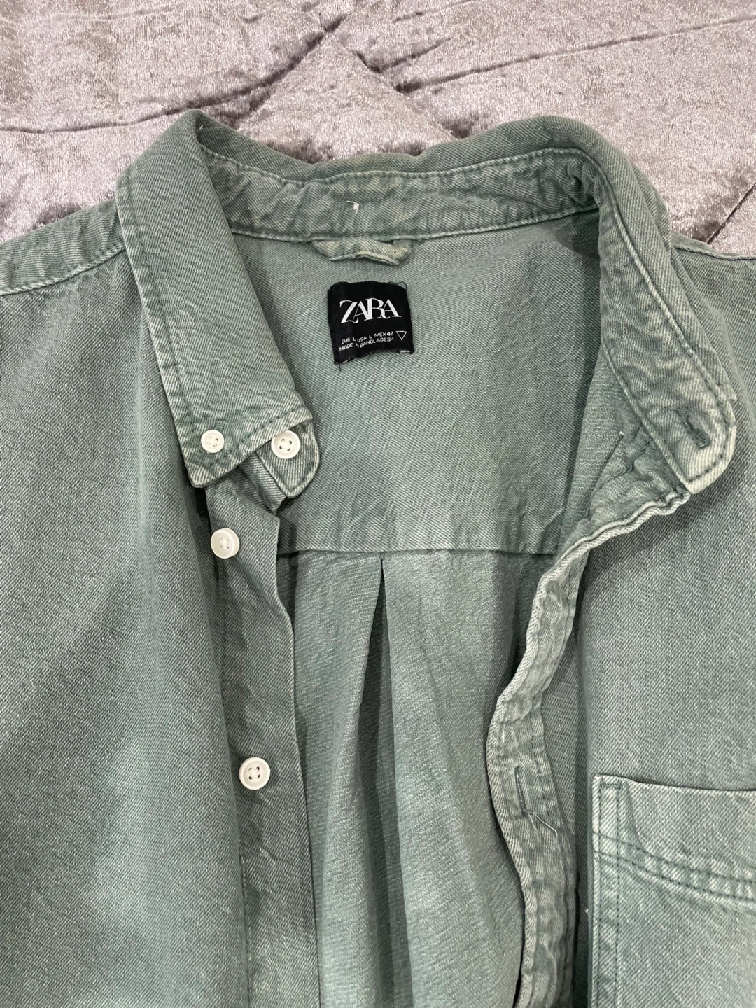 10Selling a Zara button-down shirt in a nice green color. It's a size L and in good condition. Perfect for a casual look!