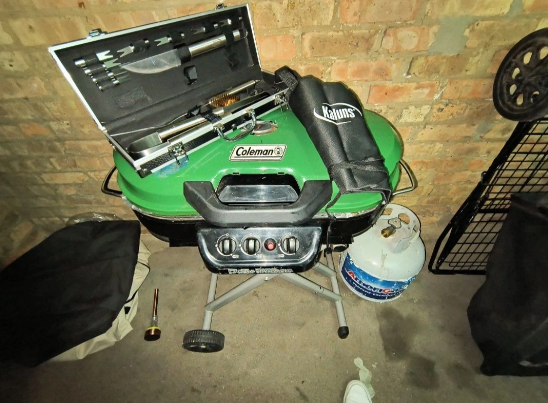 Selling a Coleman grill that's ready for your next cookout! It comes with a set of grilling tools in a case and a Kaluns protective sleeve for the grill itself and also a half full tank! awesome deal!