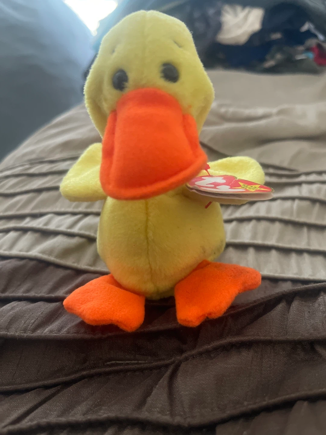 Selling a cute Beanie Baby named Quackers! This little yellow duck with orange feet and beak is in good condition. It would make a sweet addition to any collection