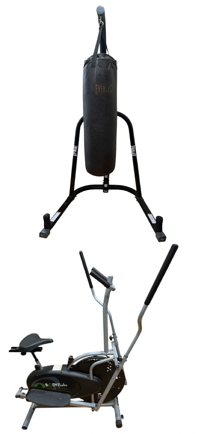 Selling an Everlast punching bag with a stand. It's in good condition and ready for a new home. Perfect for getting a great workout in! I have taken apart for easy transport Body Rider Dual Elliptical Trainer Stationary Exercise Bike LCD Display is missing but every thing else is working properly Stride Length 12.5 Inches, Don’t ask me if it still available if you see up than is still available I will take it out once it’s sale