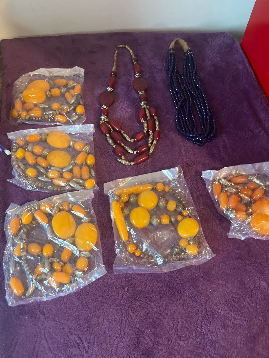 Selling a bundle of necklaces! Includes orange, red, and blue beaded necklaces. Perfect for adding a pop of color to any outfit