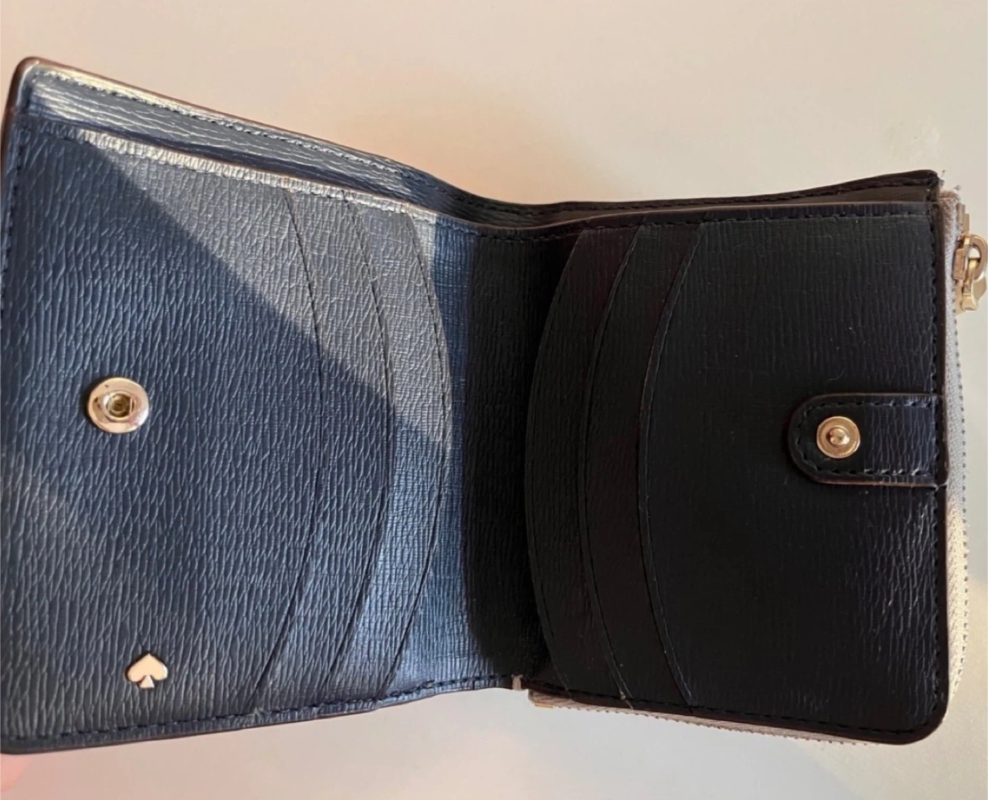 Selling a Kate Spade wallet in excellent condition! It's a stylish and compact accessory, perfect for everyday use. The wallet features a secure zip-around closure and plenty of room for your cards and cash. The exterior is a beautiful textured leather.