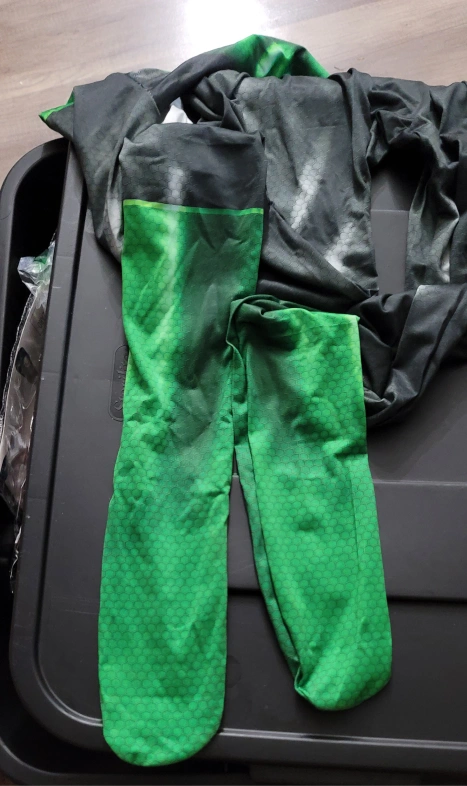 Kids Green Lantern costume. It includes a full suit with feet and gloves attached and an eye mask. Pickup in River Grove