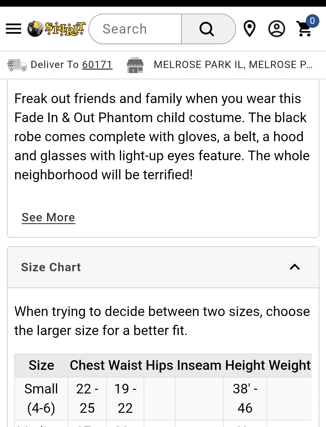 New Kids small phantom costume. It comes with the robe, hood with glowing red eyes, gloves, and a scythe that needs to be assembled. Pickup In River Grove