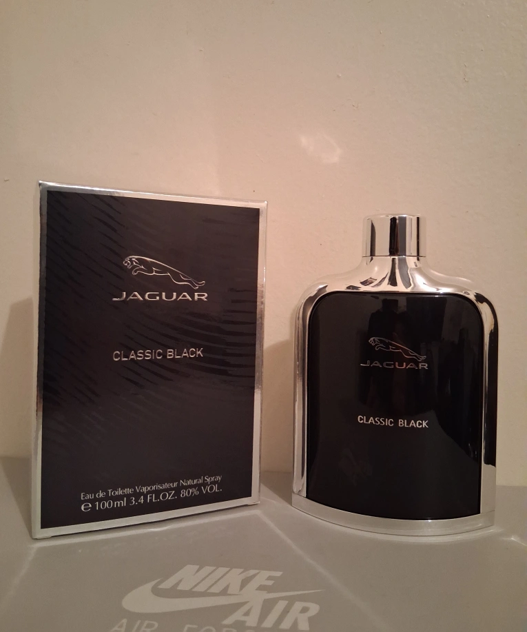 Selling a bottle of Jaguar Classic Black Eau de Toilette. It contains 3.4 fl oz (100ml) of fragrance. The box is included!