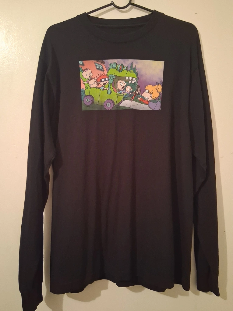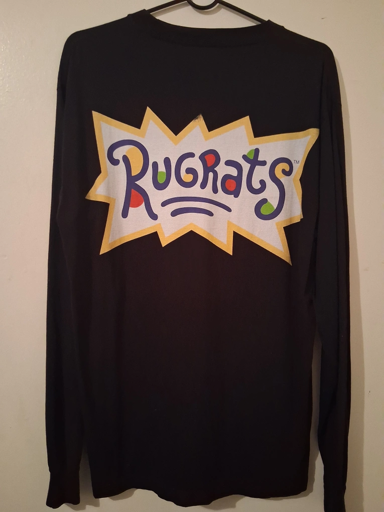 50Selling a black long sleeve shirt with a Rugrats design on the front and the Rugrats logo on the back. It's in great condition and perfect for any 90s kids size large. open for trades.