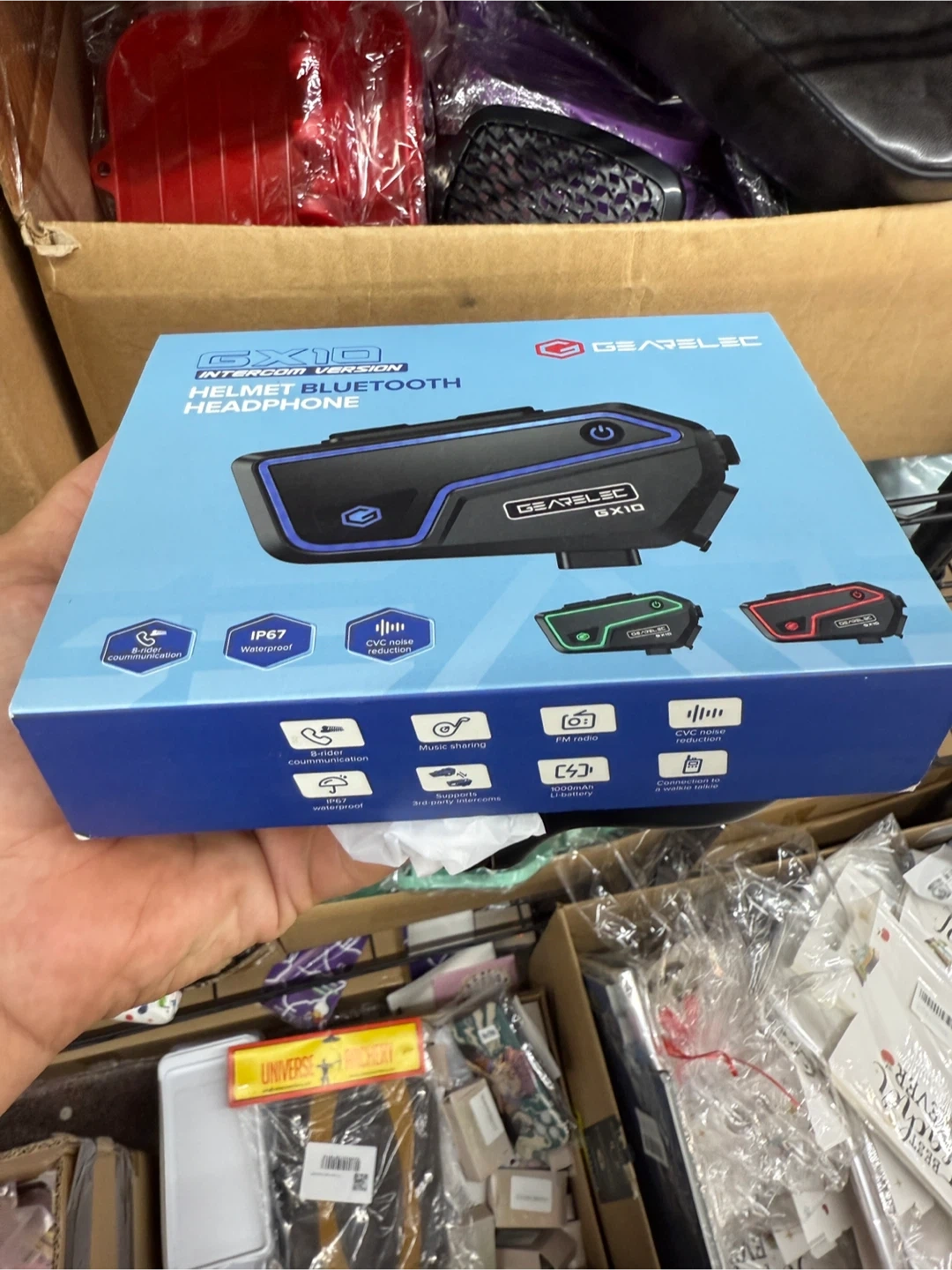 I'm selling a brand new GEAR ELEC GX10 helmet bluetooth headphone. It is suitable for motorcycle riding, skiing, live sports games, off-road vehicles, and outdoor leisure. It's waterproof and has CVC noise reduction. It also has music sharing and supports 3rd party intercoms