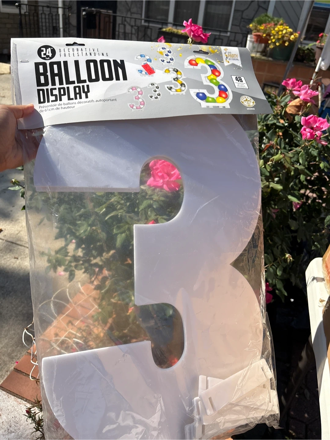 Selling a brand new, decorative, freestanding balloon display in the shape of the number 3! It's 24 inches tall and comes with 48 pieces to create a fun and festive decoration