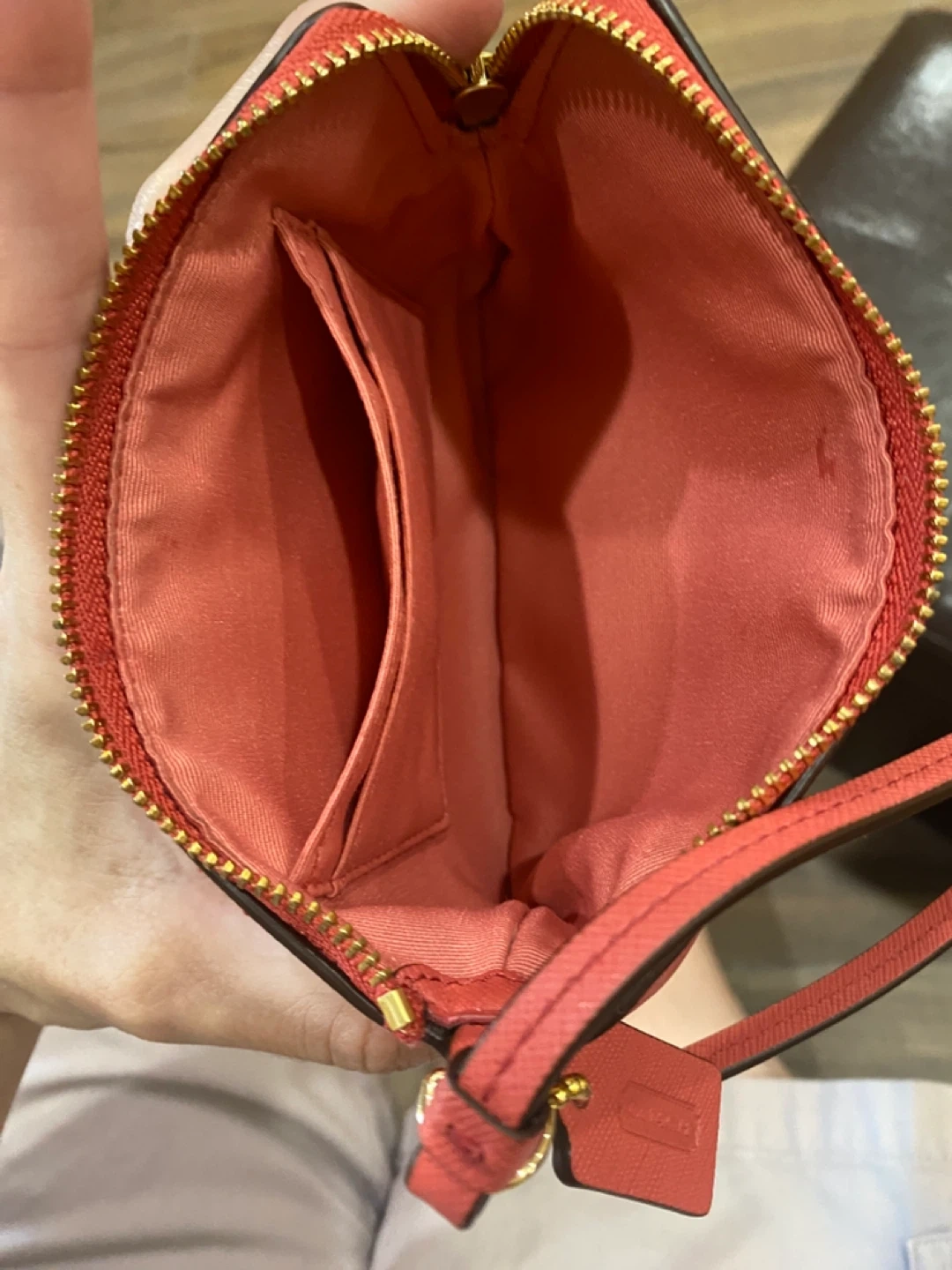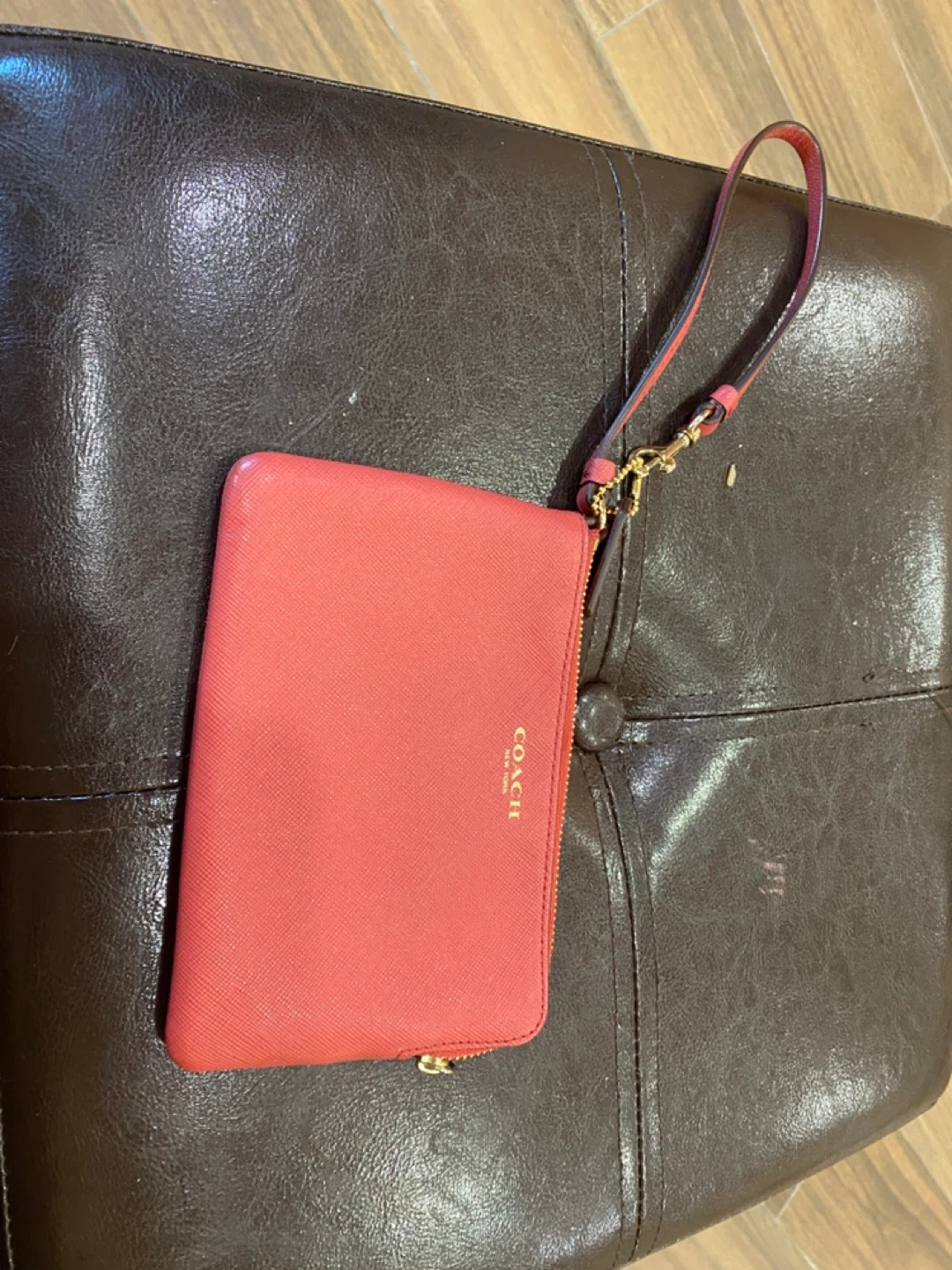 70This is a Coach wristlet in a coral color. It's in good condition and has a convenient wrist strap. Perfect for carrying your essentials! 6x4 Pick up in Bensonhurst bklyn Text 347-366-4713