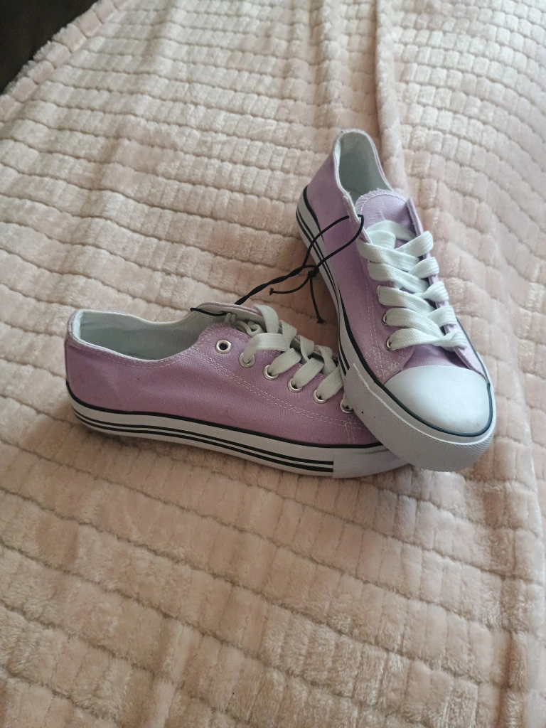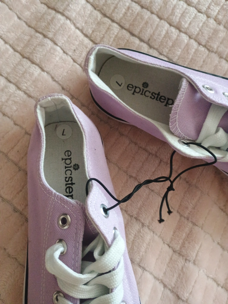 Cute purple canvas sneakers from Epic Step! They're a size L and have white laces and white rubber soles with black stripes. Perfect for casual wear and adding a pop of color to your outfit