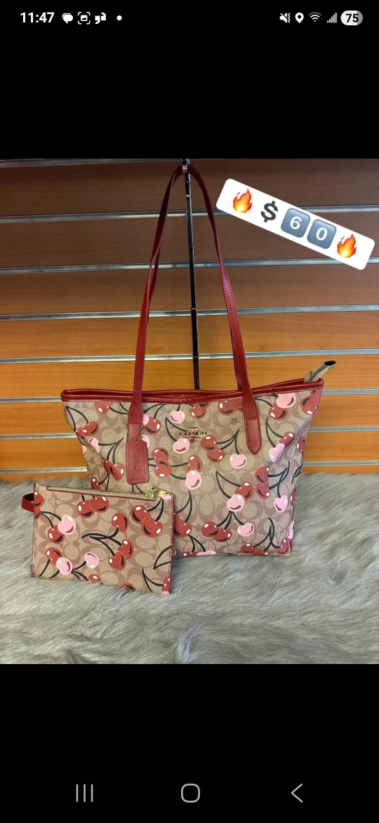 Cute Coach tote bag with a fun cherry print! It comes with a matching pouch. Great for carrying your everyday essentials in style