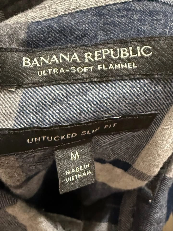 Banana Republic Men’s Gingham Flannel Plaid Button-Down Shirt in size Medium. Featuring a classic blue & Grey checkerboard plaid design, this shirt is both versatile and stylish—perfect for layering or wearing solo. Made from soft cotton flannel, it offers comfort and durability. Great choice for casual outings, work-from-home wear, or a laid-back night out. 📏 Measurements (approx.): Pit to Pit: 21.5' inches Shoulder to Hem: 24' inches Sleeve Length (Shoulder to Cuff): 25' inches Let me know if you're interested!