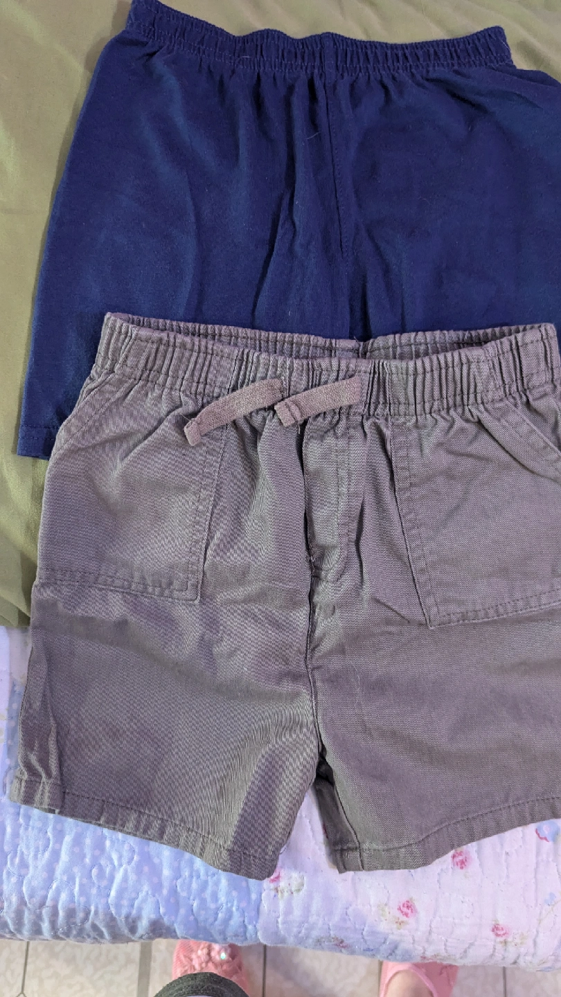Two pairs of kids shorts in good condition! One is a solid navy blue, and the other is a heathered gray with front pockets and a drawstring waist