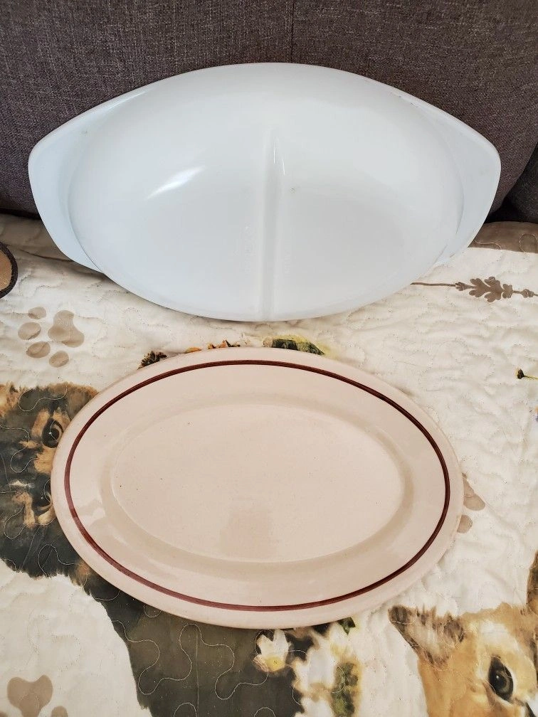 25White divider is Pyrex. Tan is Sterling verified China made in the USA. Cash only, pickup in Town of Newburgh, NY by Aldi's. OBO