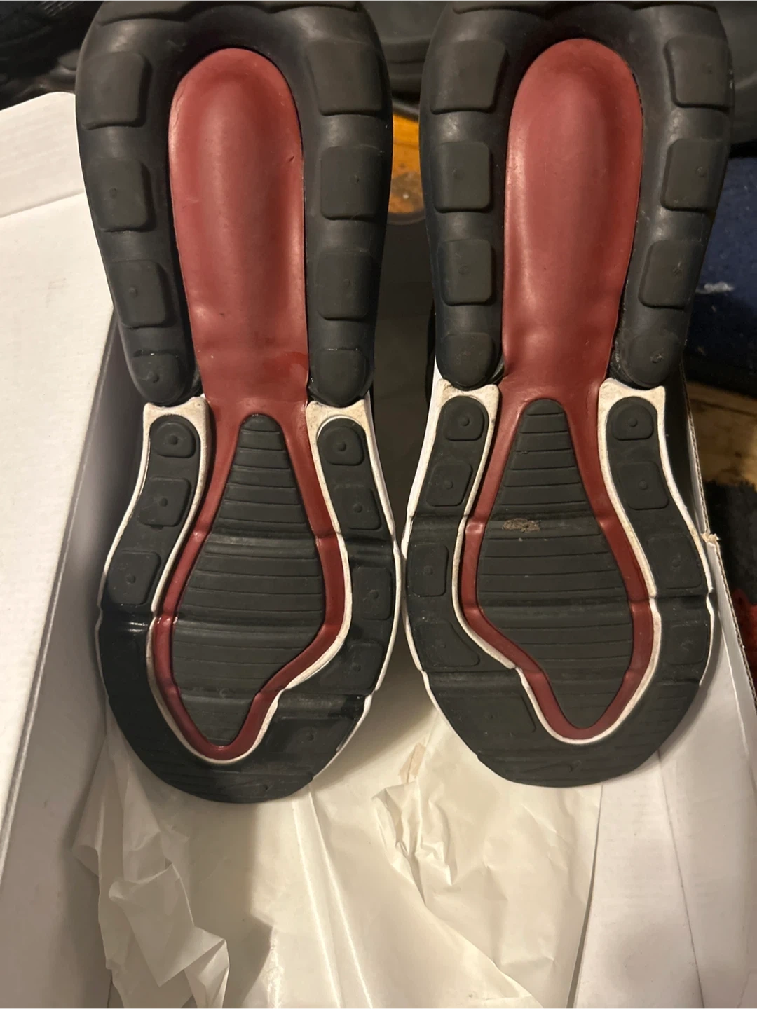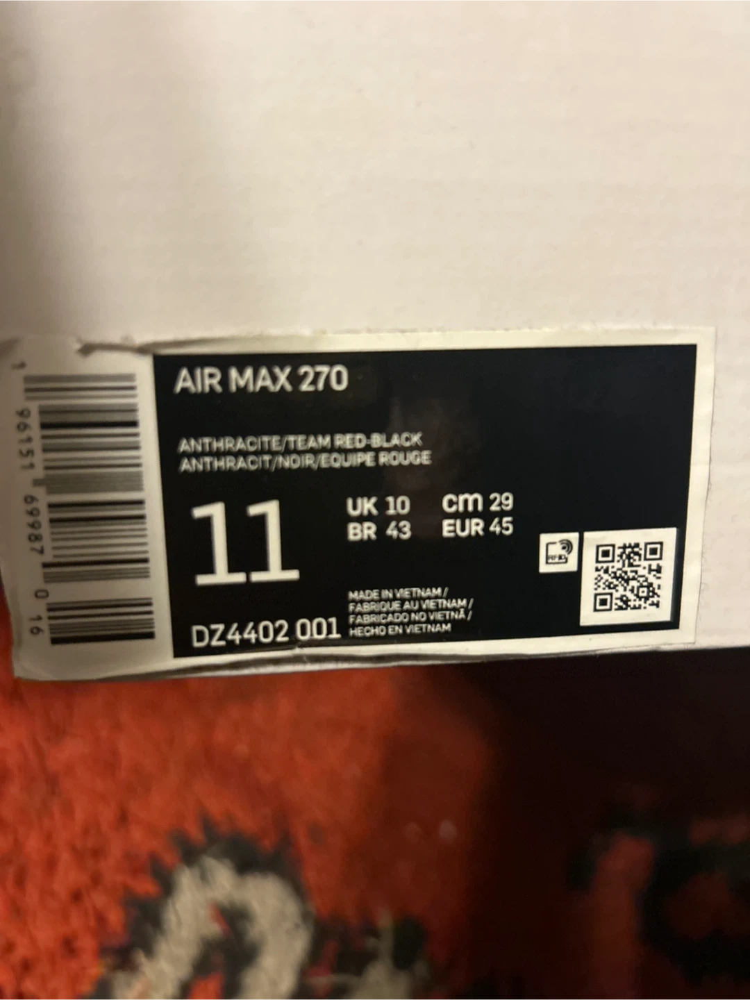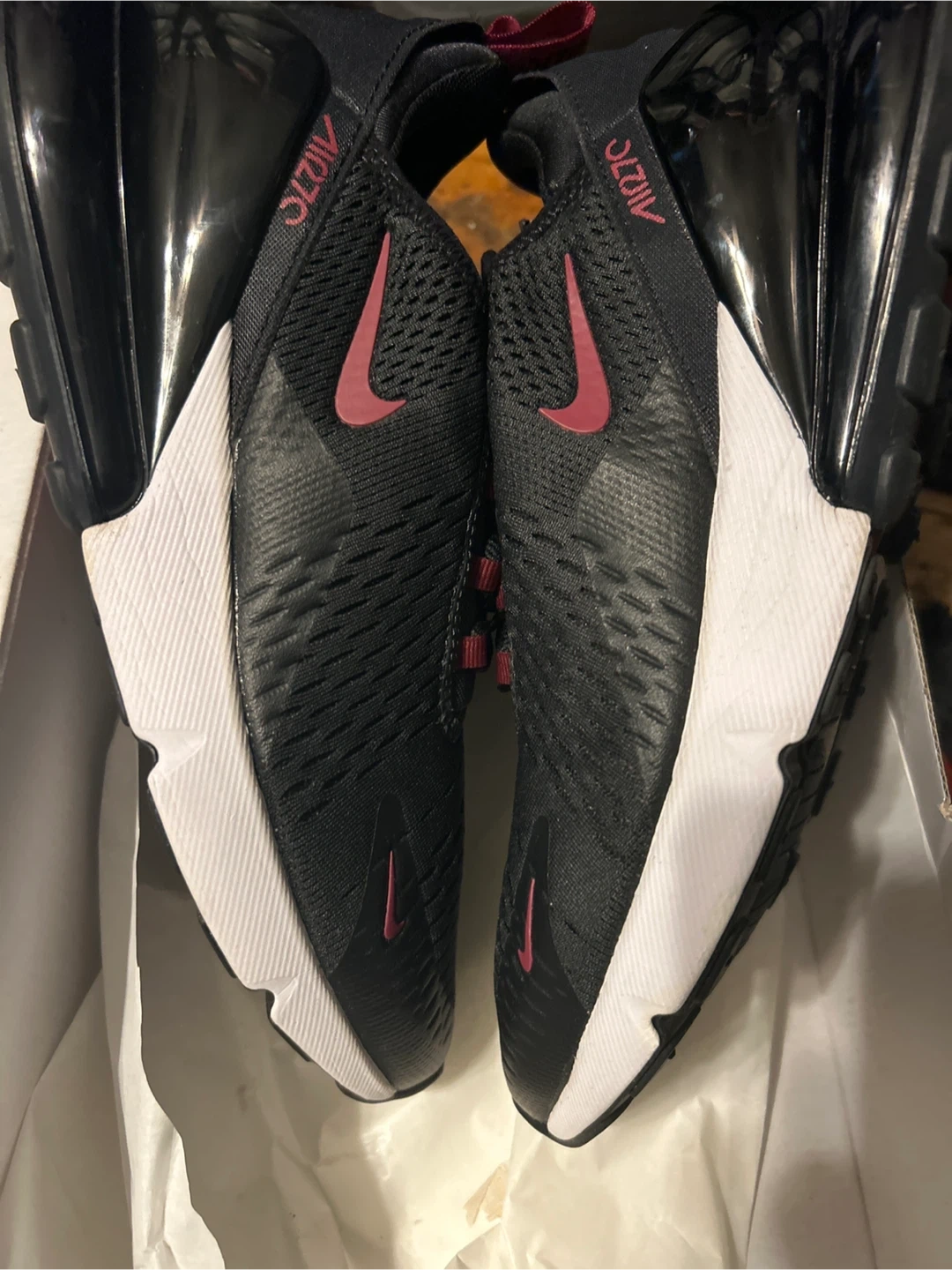 Price firm like new Selling a pair of Nike Air Max 270 sneakers in black with red accents! They're in great condition and come with the original box. These shoes are super comfortable and stylish, perfect for everyday wear or hitting the gym. Check out the photos for a closer look! Price firm