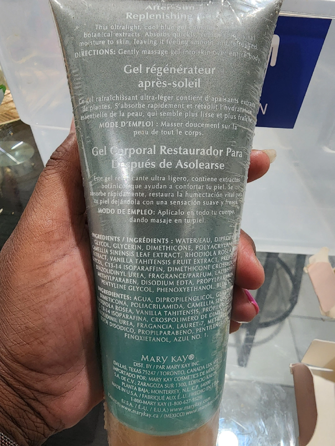 Selling a Mary Kay After-Sun Replenishing Gel. It's a lightweight gel with botanical extracts. This gel is 6.5 fl oz / 192 ml. Perfect for soothing and refreshing skin after sun exposure