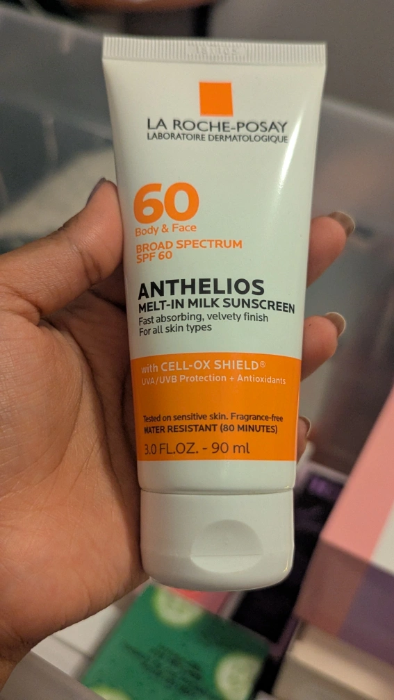 Selling a La Roche-Posay Anthelios Melt-In Milk Sunscreen with SPF 60! It's broad spectrum and designed for both body and face. It's fast-absorbing, has a velvety finish, and is suitable for all skin types. Also, it's water-resistant for up to 80 minutes and fragrance-free