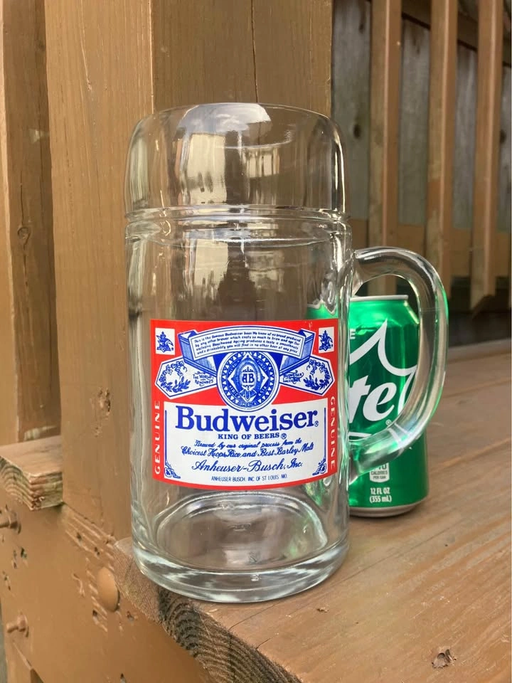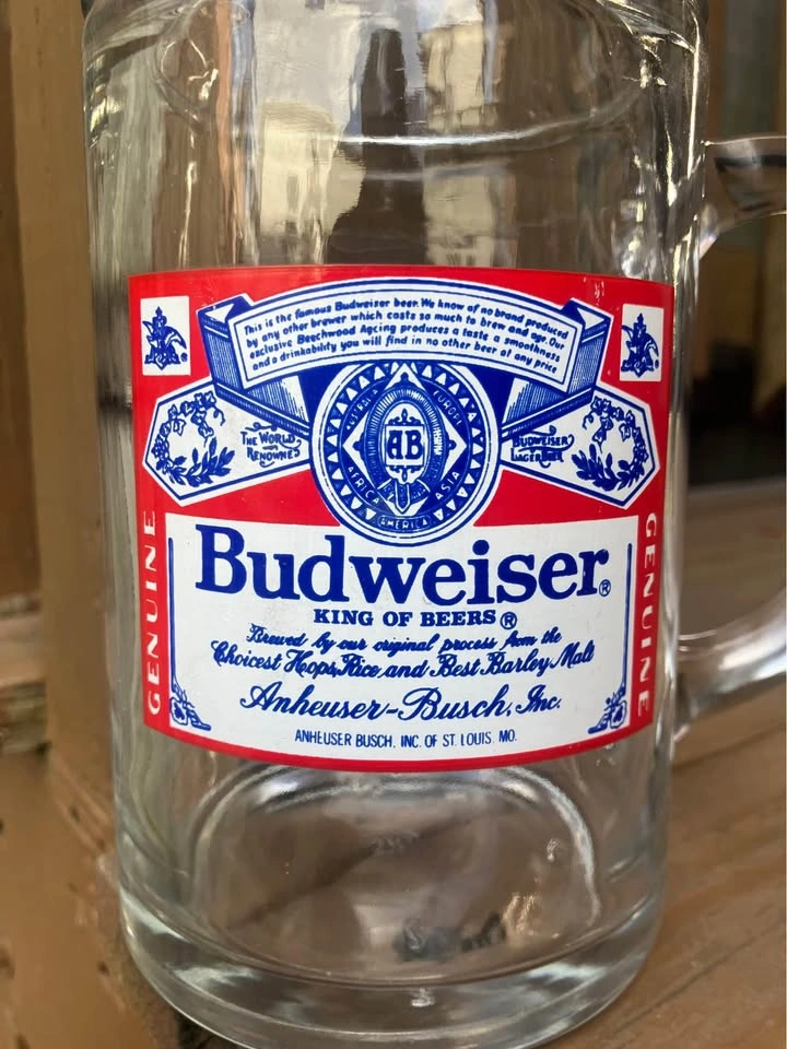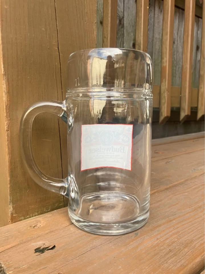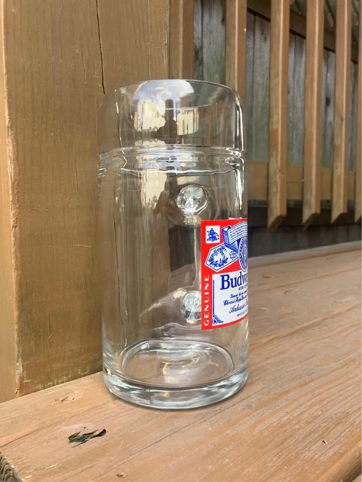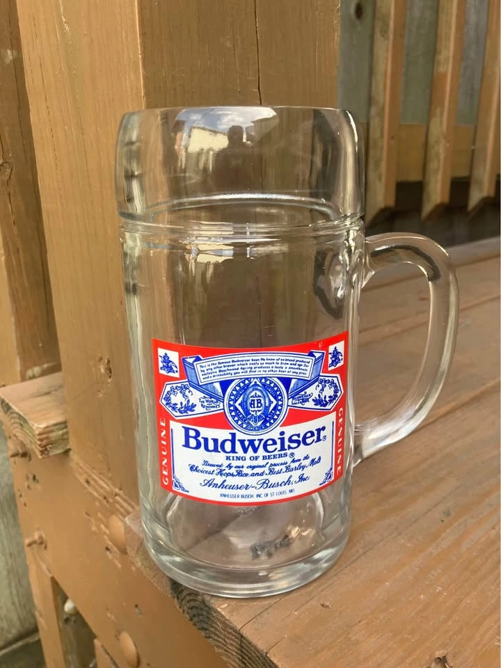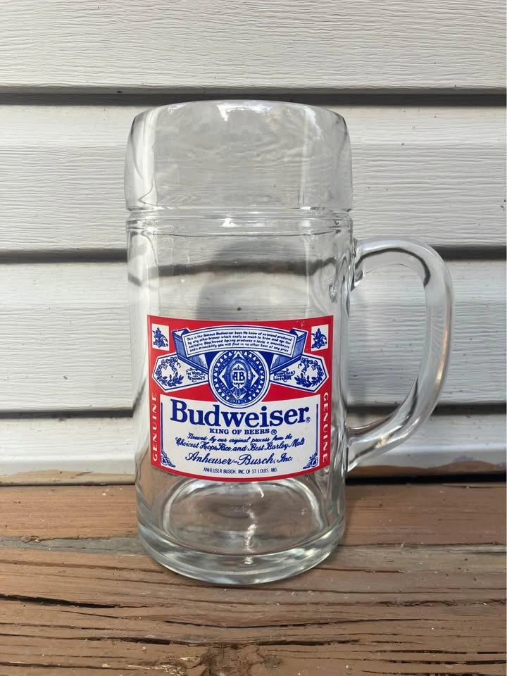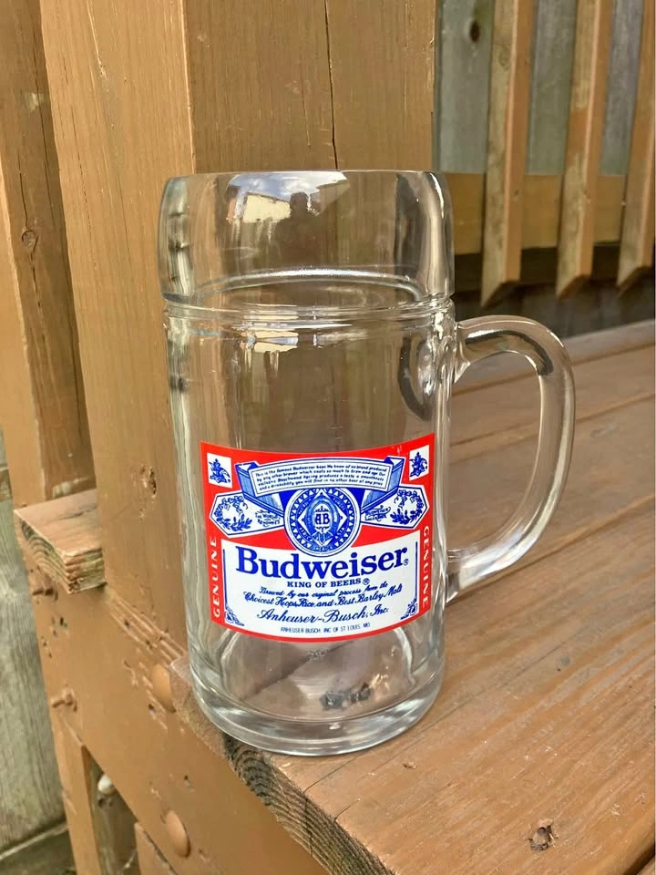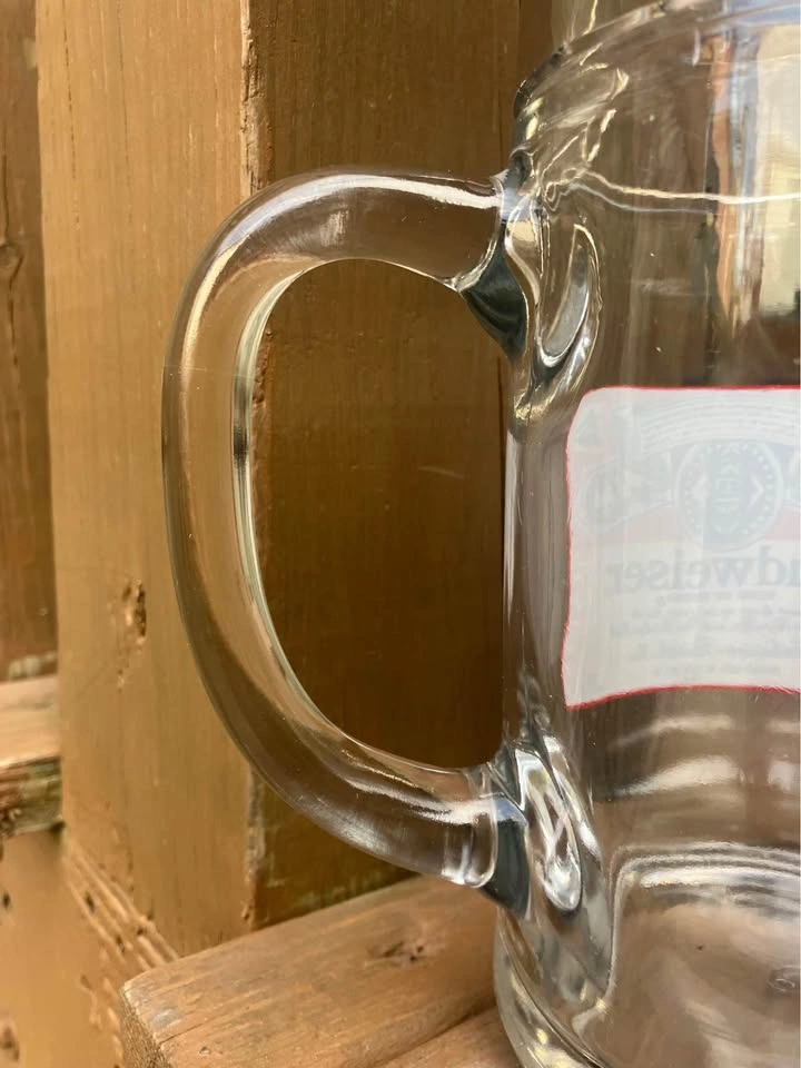 Vintage Budweiser 40 Oz. Thick Glass Mug - Excellent Condition Made in the USA, handled stein is in excellent condition with no chips or cracks. Measures 8” tall x 3.5” diameter at the mouth. Handle is 4.5” long. Weighs 1.5 pounds. Features the iconic Budweiser logo. From a smoke and pet free home. Check out in person before purchasing. Thanks for looking.