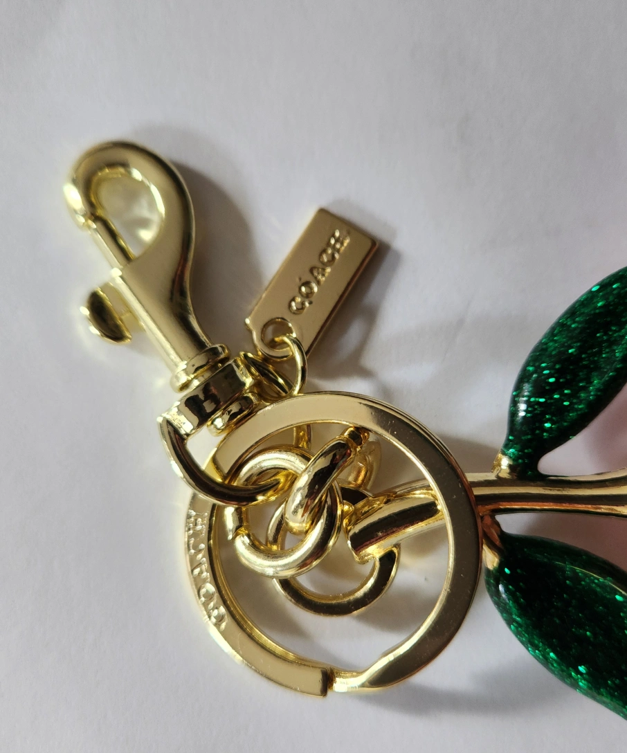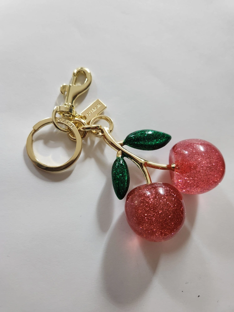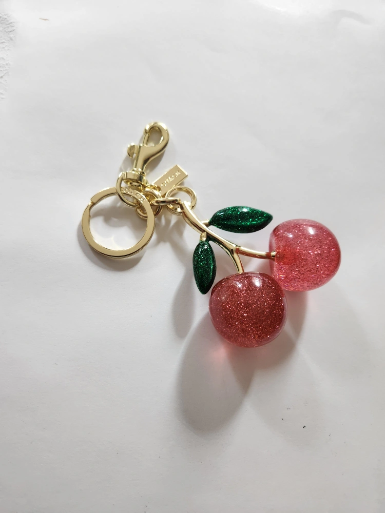 Cute Coach cherry keychain in gold and pink! Perfect for adding a little sparkle to your keys or bag