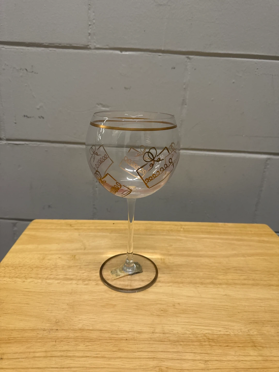 Selling a set of 4 Mikasa Holiday Splendor wine glasses! These glasses feature a festive holiday design with gold trim and gift box accents. Perfect for adding a touch of elegance to your holiday gatherings. They come in the original box!