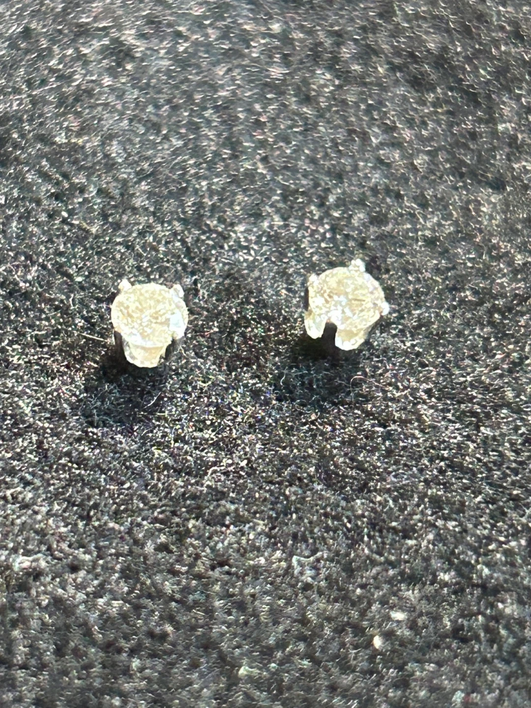 Selling a pair of natural diamond stud earrings 0.50 tcw set in 14 Kt white gold. H-1 color ( near colorless), 1 clarity and good cut quality Apprized at $675.00 They are in pristine condition and ready for a new home! You are more than welcome to have them tested and apprised.