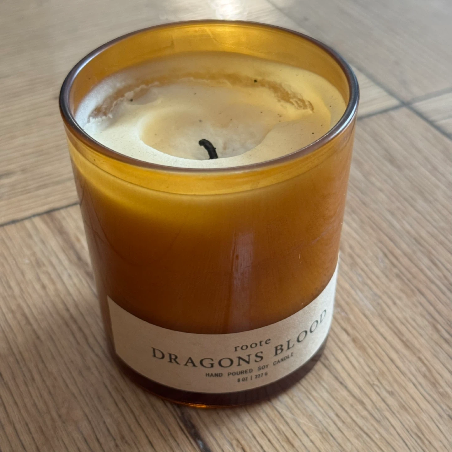Selling a roote Dragons Blood hand-poured soy candle. It's an 8 oz candle. Originally $25. Burned only once.
