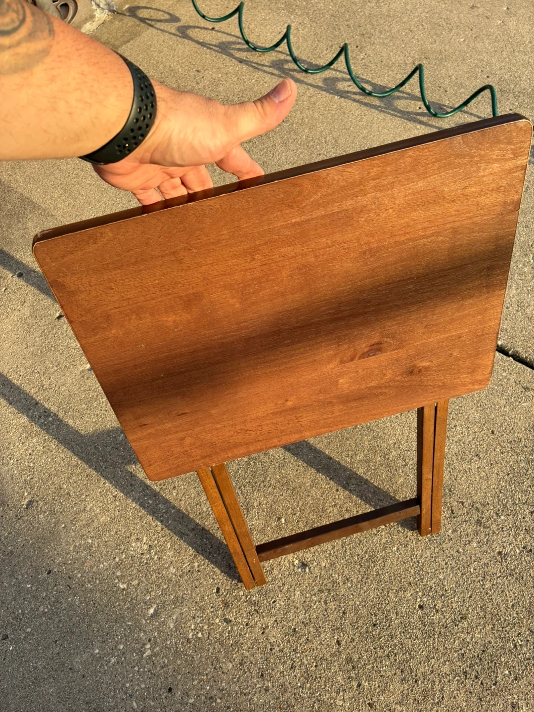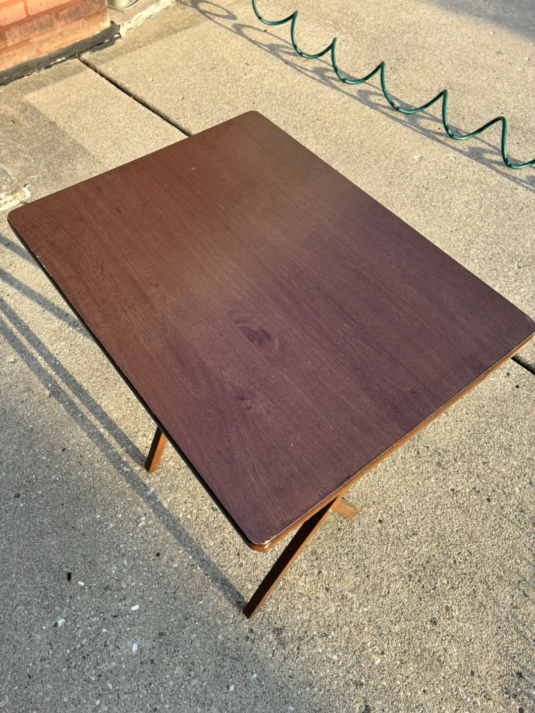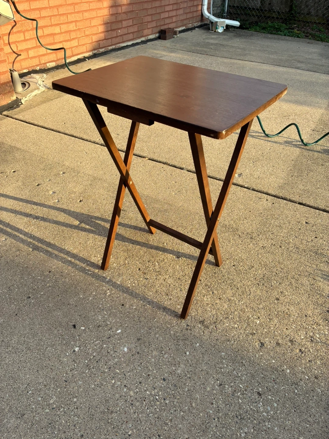 Folding TV Tray Table - Brown Selling a folding TV tray table. It's in good condition and perfect for eating in front of the TV or using as a small side table. The table is brown and folds up easily for storage Pick up in Norridge Price $10