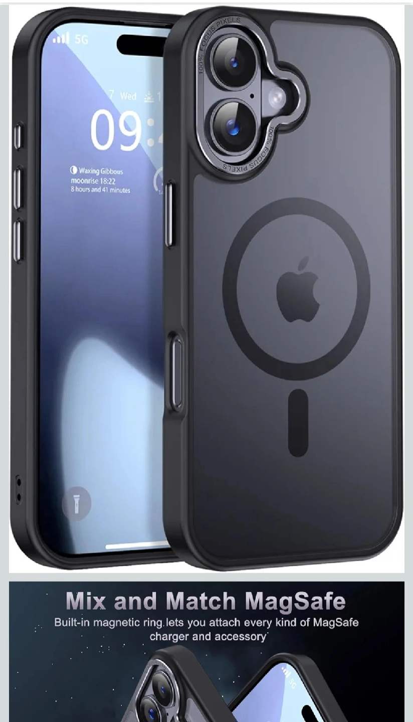 I'm selling a Newfuture iPhone case with MagSafe in black. It features a built-in magnetic ring to attach every kind of MagSafe charger and accessory. It also has super magnetic power, so once attached, it will never fall. The case has upgraded metal camera protection and 1.5mm screen and camera bumpers