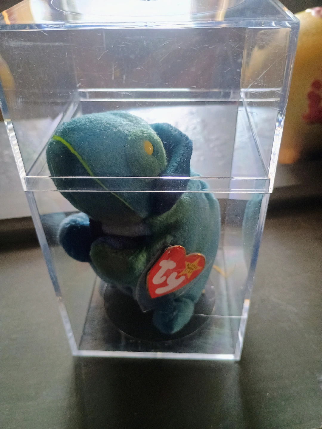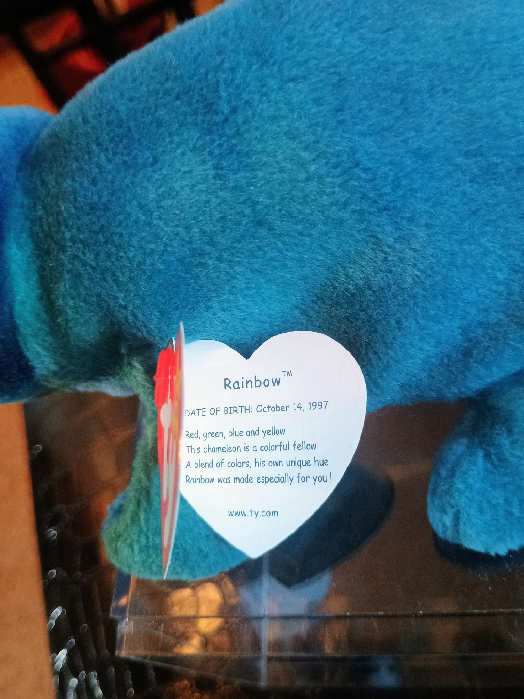 Selling a Ty Beanie Baby named Rainbow the Chameleon! According to the tag, Rainbow's date of birth is October 14, 1997. This chameleon is a colorful fellow with a blend of colors, his own unique hue! Rainbow was made especially for you