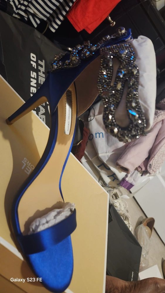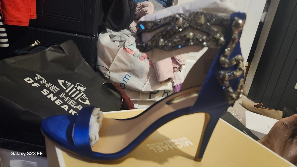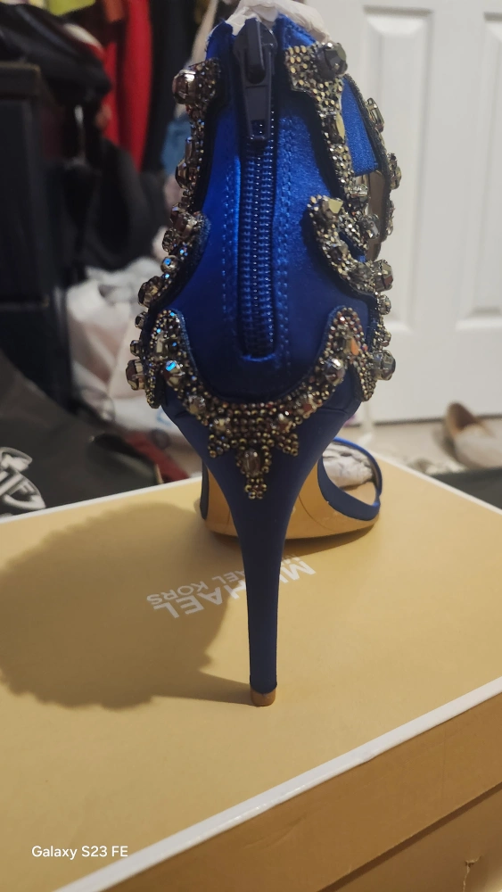 These are a beautiful pair of Michael Kors heels in a vibrant blue color! They feature elegant embellishments that add a touch of sparkle. Comes with the original box