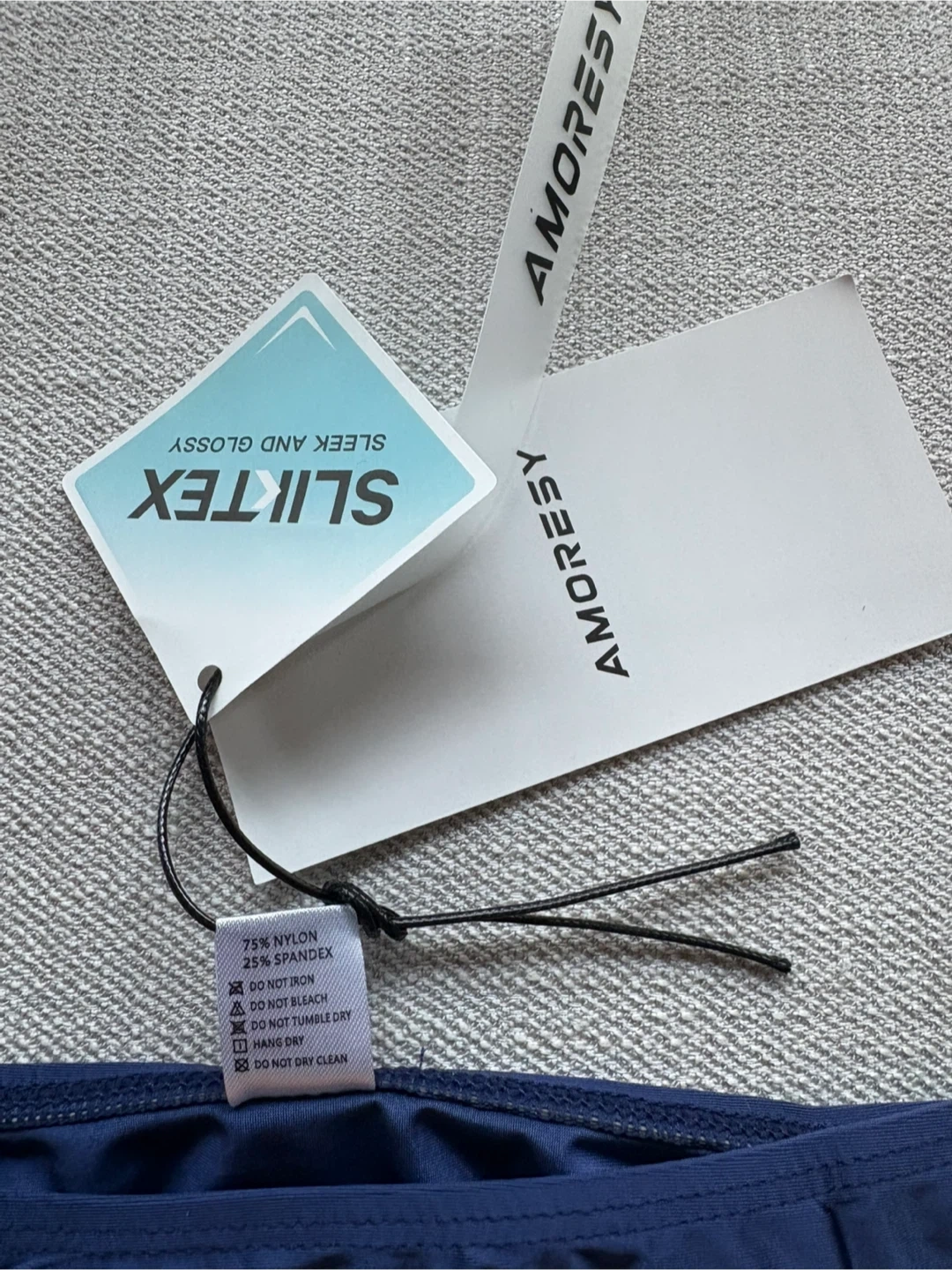The material is 75% nylon and 25% spandex, making it sleek and stretchy Size says XXL but fits like a medium to large