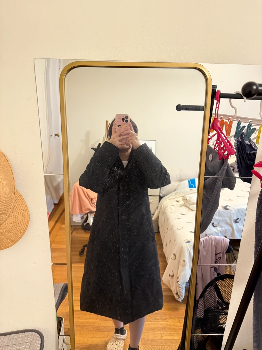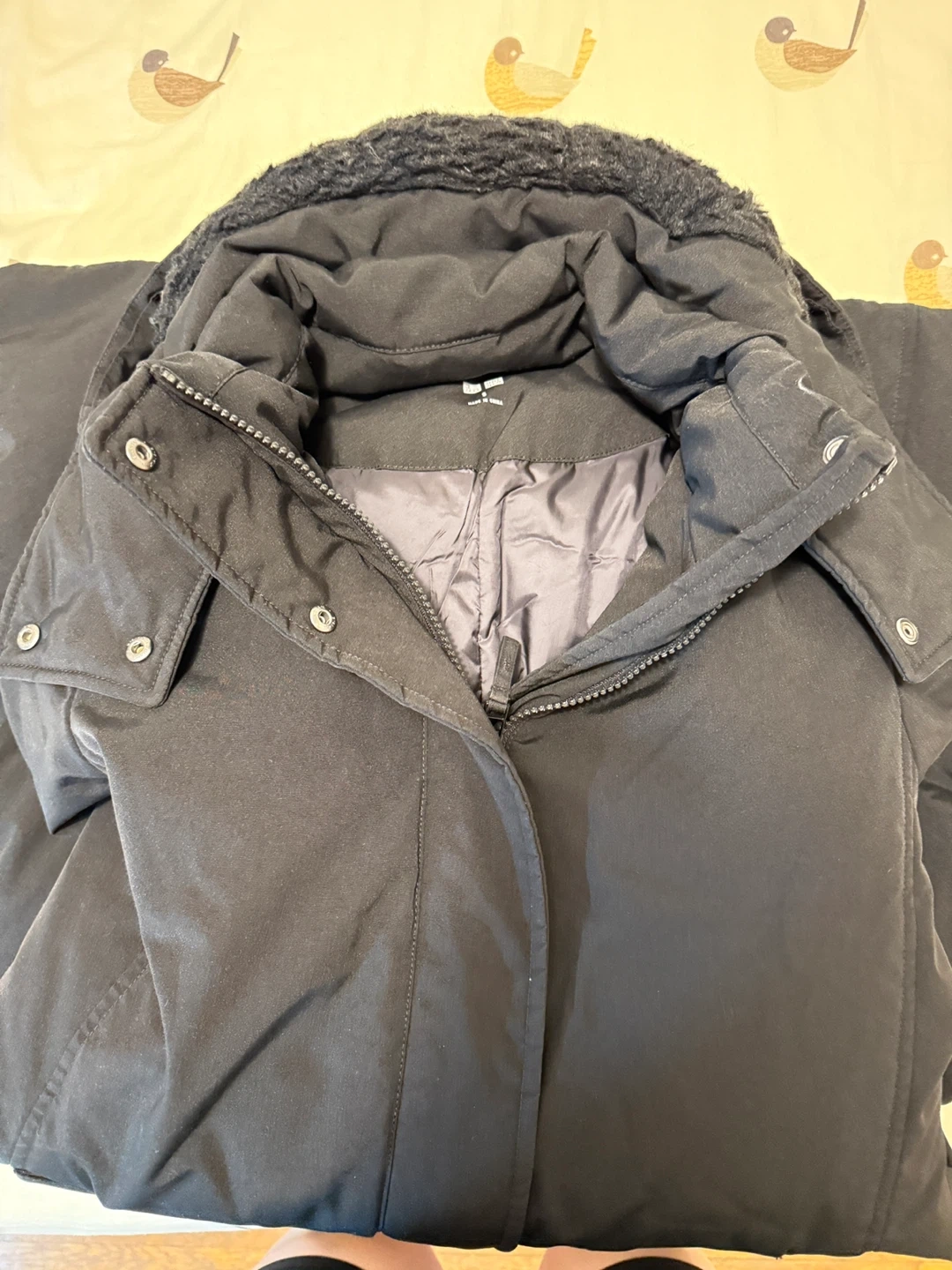 73Selling a Uniqlo black coat in size small. It's in great condition and perfect for the colder weather!