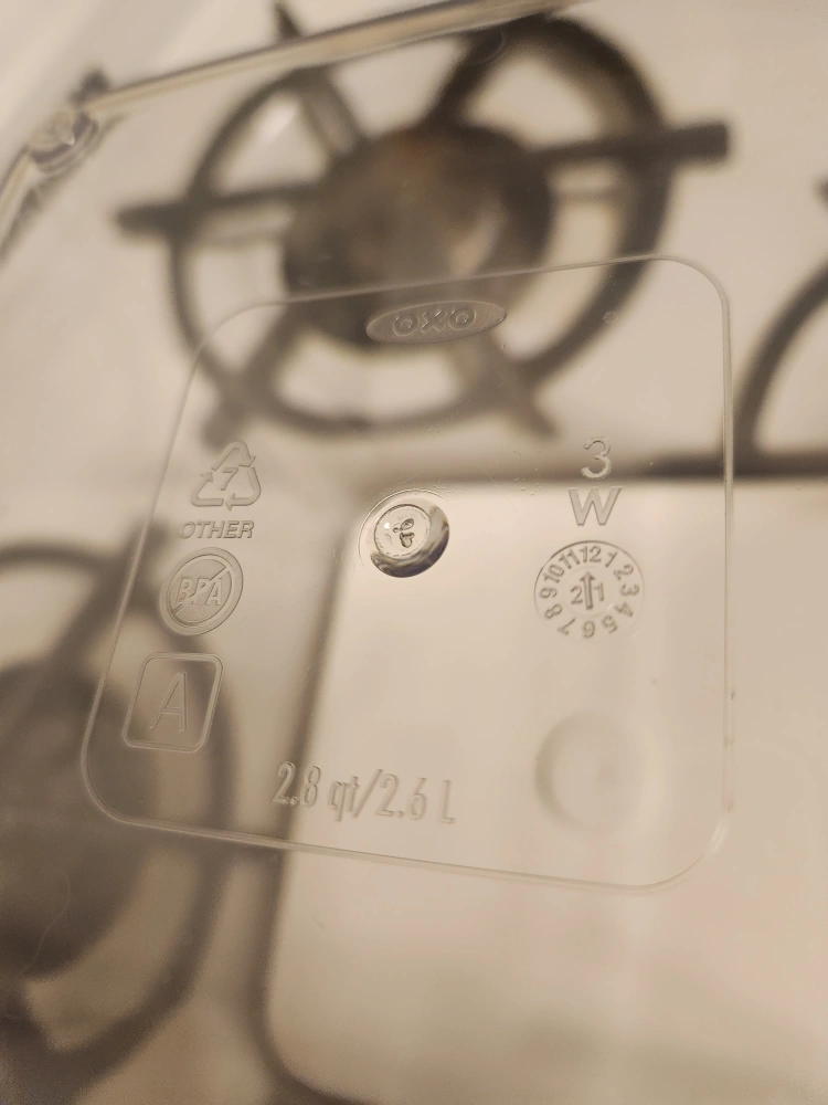 OXO Good Grips container that holds 2.6 liters or 2.8 quarts. Barely used. Selling for $3 if no trade.