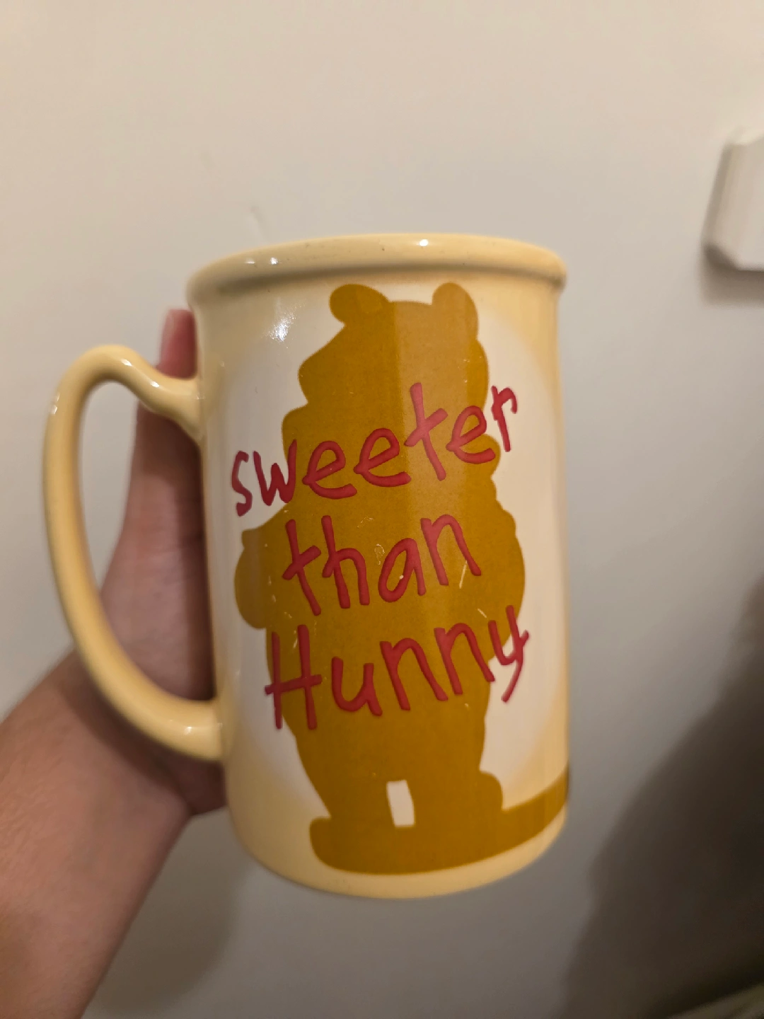 Selling a Winnie the Pooh mug from the Disney Store! It's a cute mug with Pooh on one side and 'sweeter than Hunny' on the other